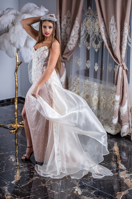 Rochie de mireasa lunga cu model decupat EVM-1035