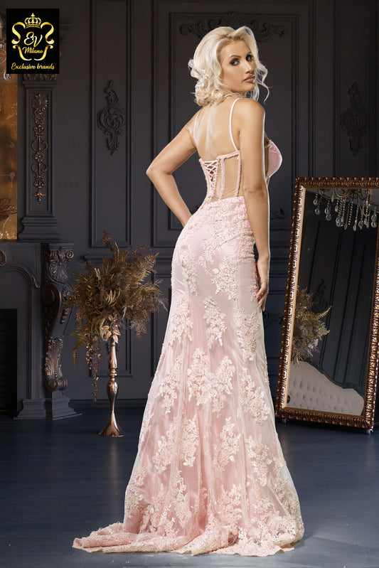 Rochie de seara lunga cu model transparent si model brodat EVM-1015